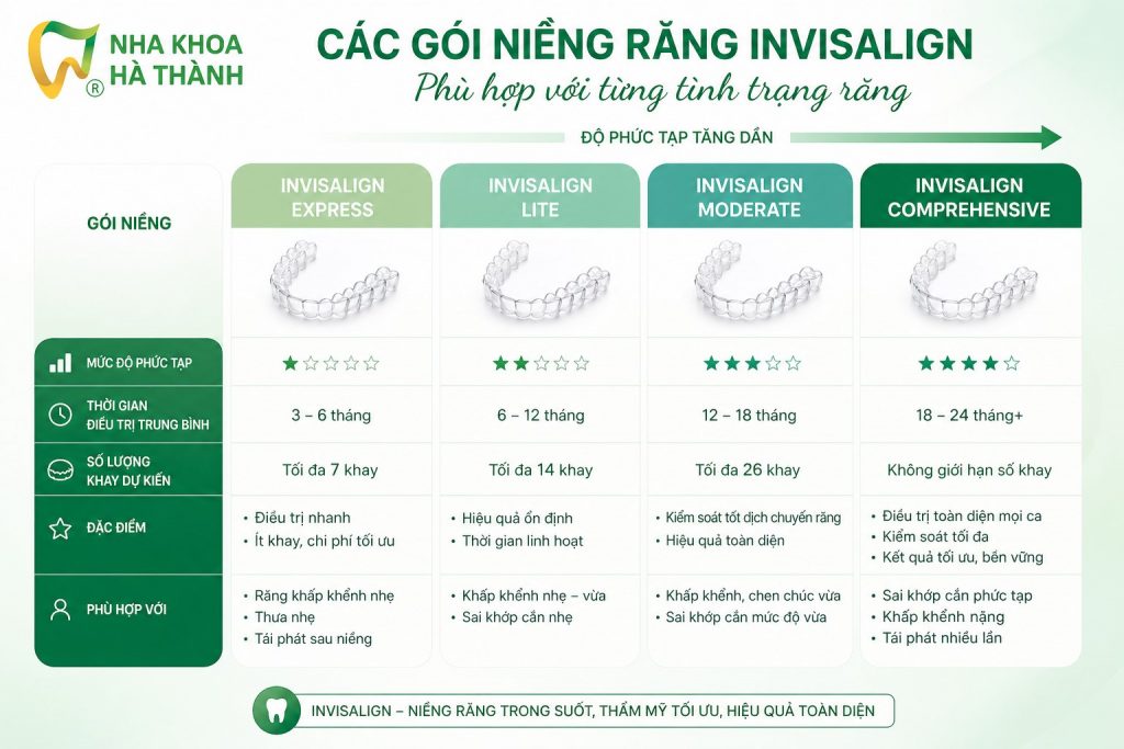 Tùy vào tình trạng răng và mục tiêu điều trị, Invisalign có nhiều gói khác nhau: