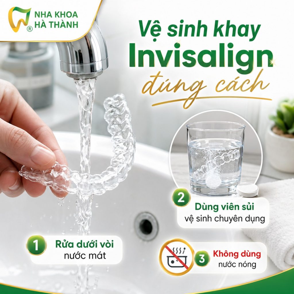 - 1 lần/tuần ngâm khay trong viên sủi vệ sinh chuyên dụng (Invisalign Cleaning Crystals)